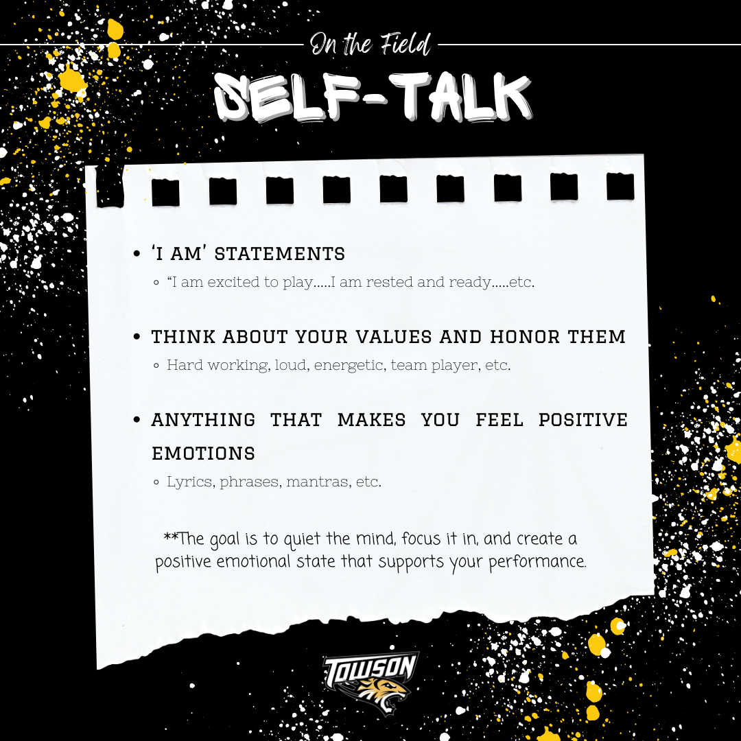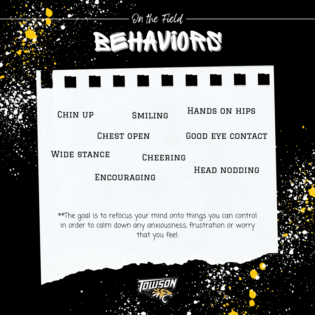 Below are the mental performance topics that were covered with players during camp. The main concept presented was that pleasant mental and emotional states help us access higher levels of performance by decreasing muscle tension, improving blood flow, slowing and deepening our breath, improving blood oxygen levels, increasing stamina, and improving vision and coordination.